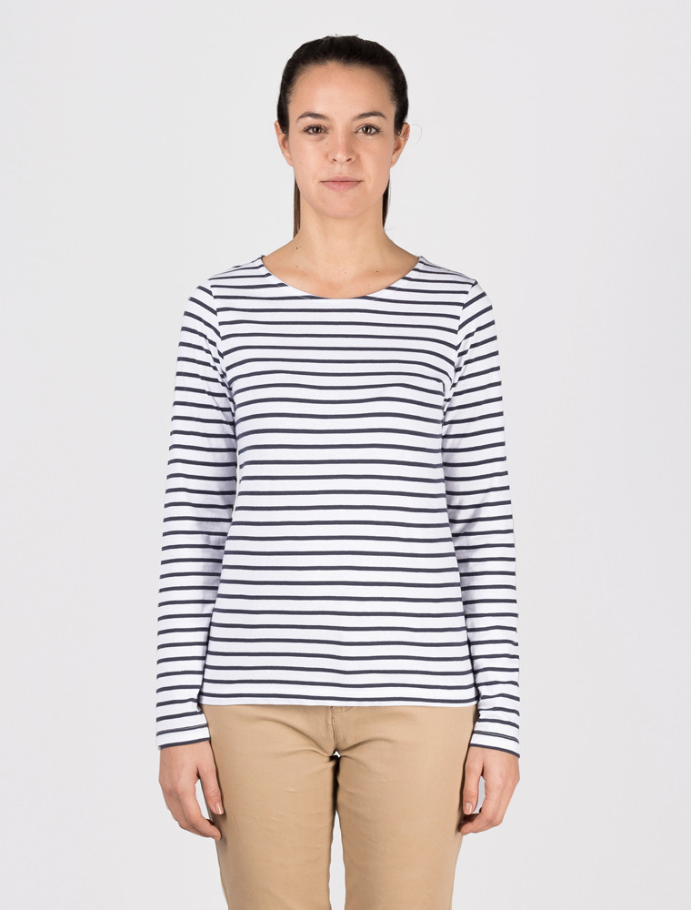 Camiseta de rayas de manga larga de mujer. Qooqer